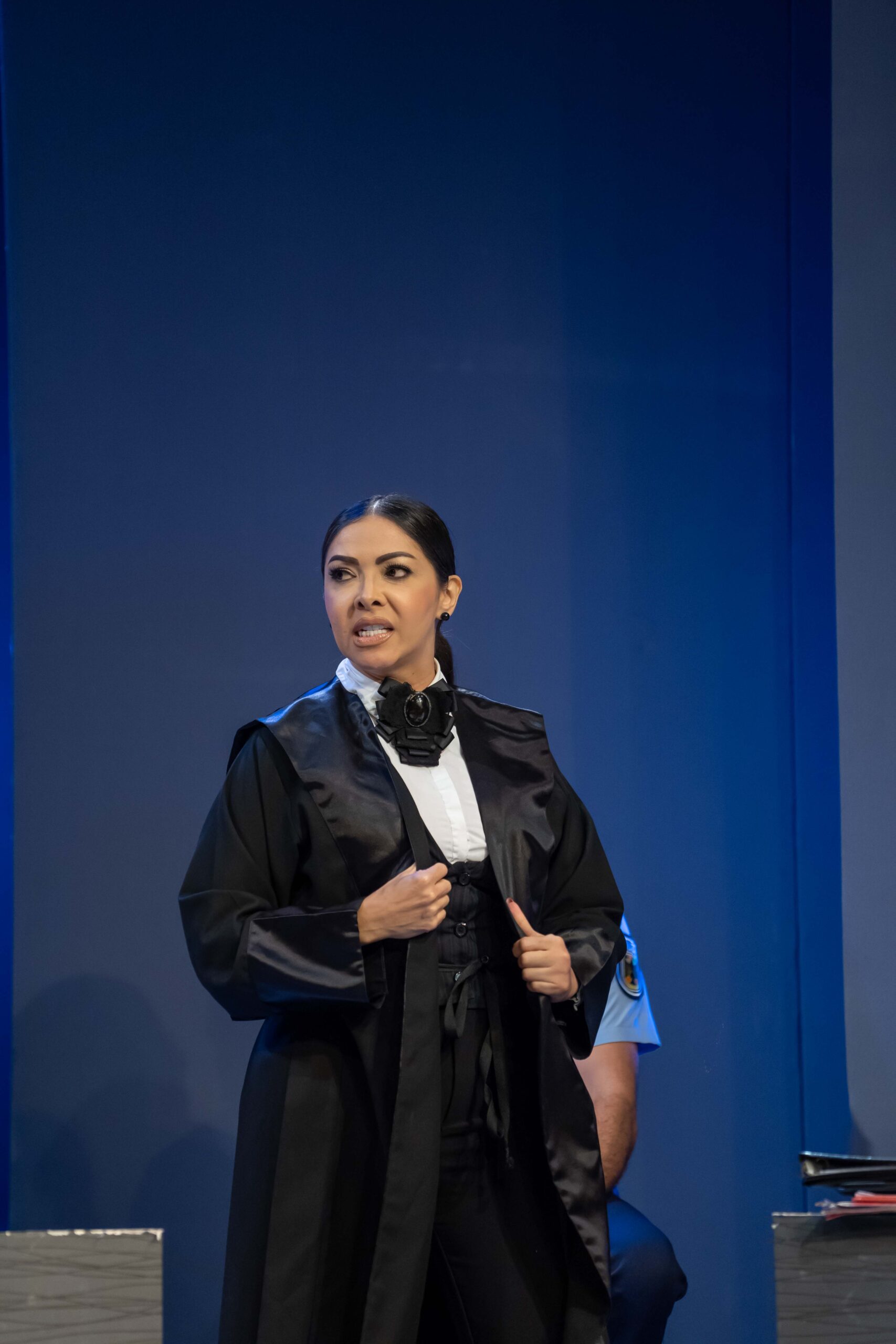 Luvil González le dió vida a la señora Nielsen (La Fiscal), quien alcanzó la interpretación más trascendente al dar vida a una fiscal inquisidora, impertinente, con dominio de la escena y una expresión que transmitió la rigidez de quien busca la condena del acusado.