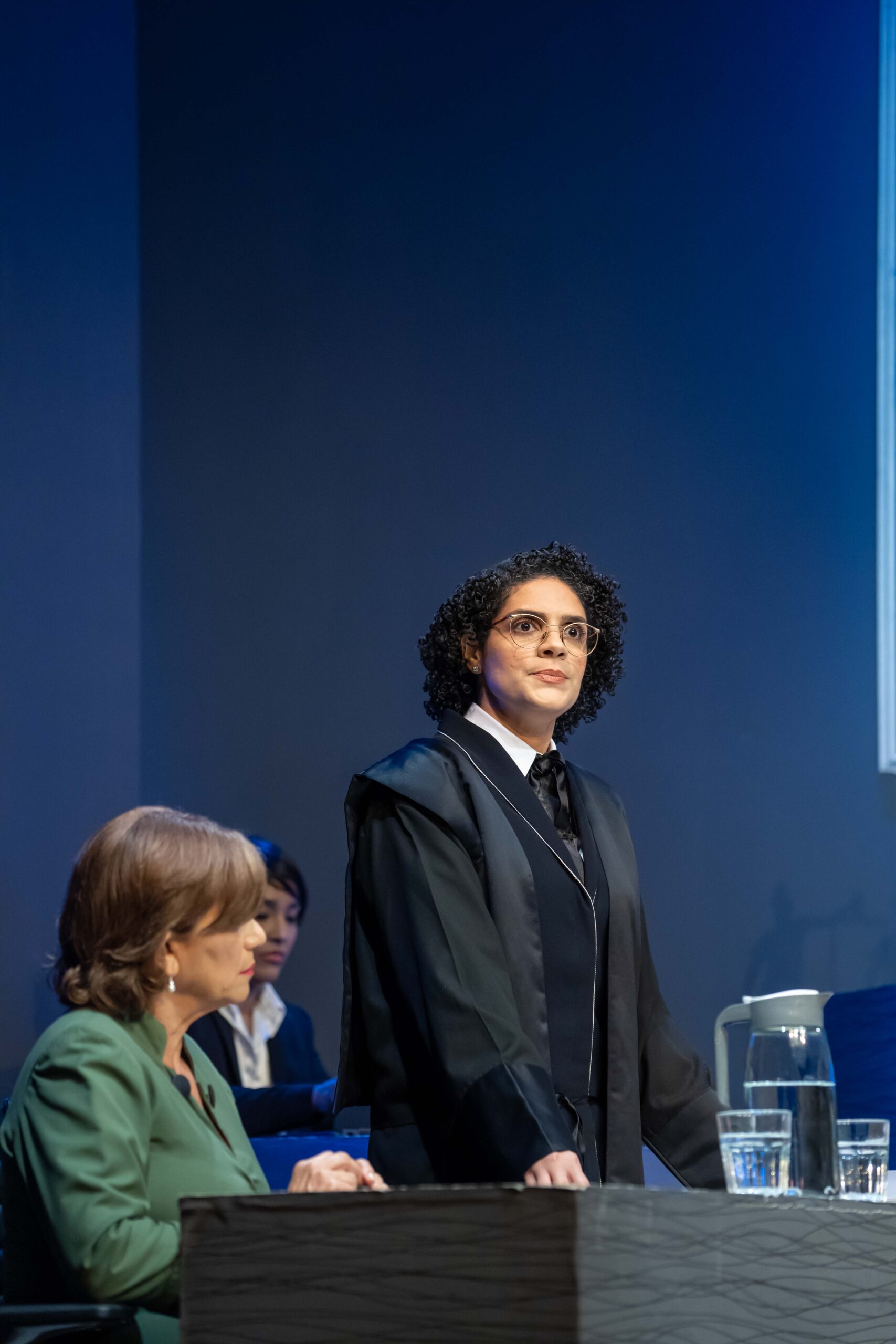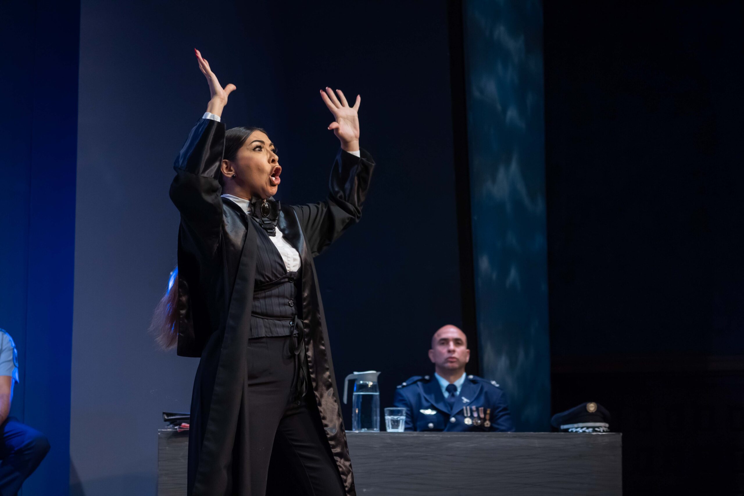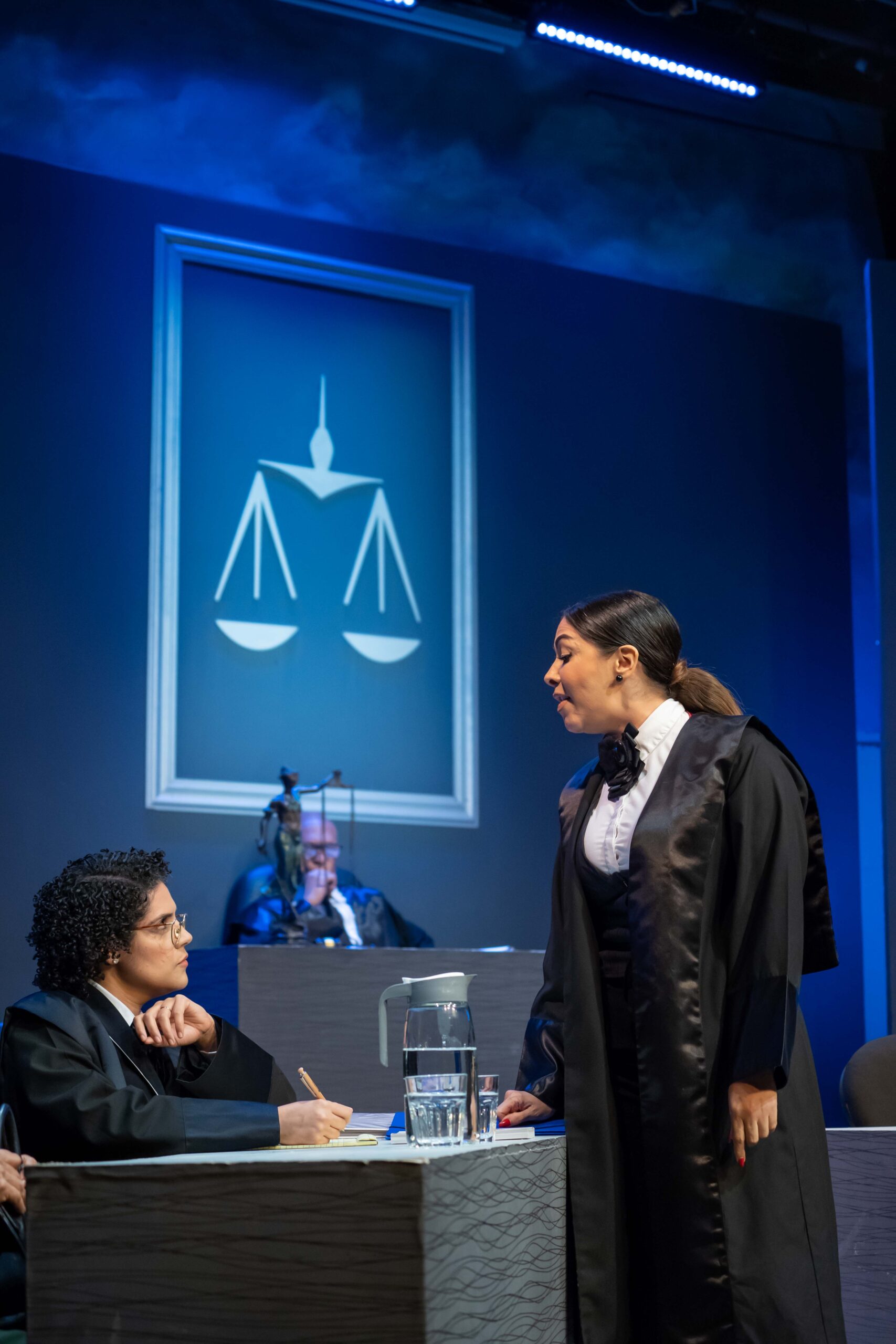 Algo novedoso en esta gran producción teatral fue la participación del público, integrándose al final para decidir si dejar en libertad al acusado con su votación a través de un código QR.
